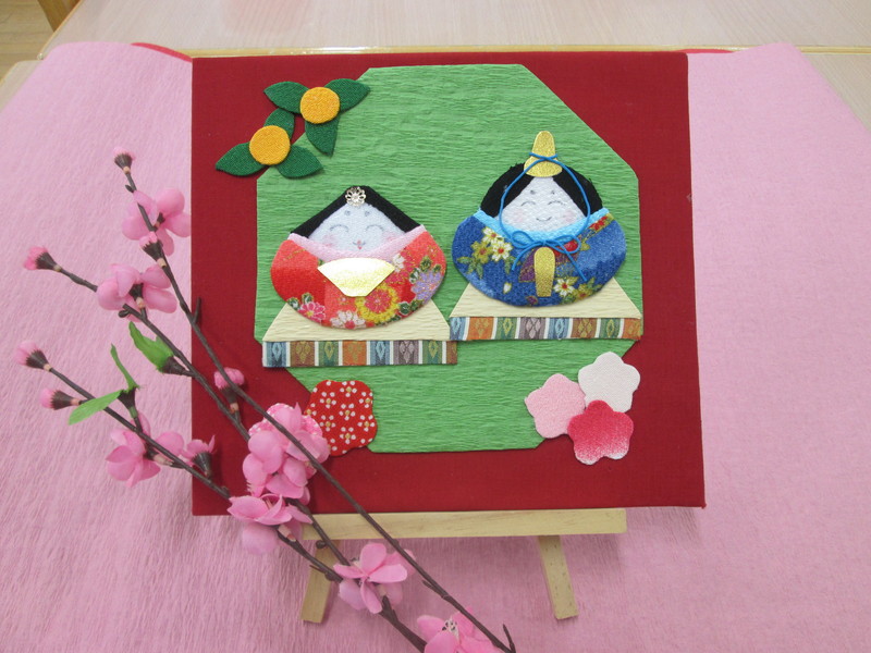 白樺デイサービスでは3月2日・3日に『ひなまつり会食会』を行い、手工芸ではちりめん工芸の雛飾りを作りました。