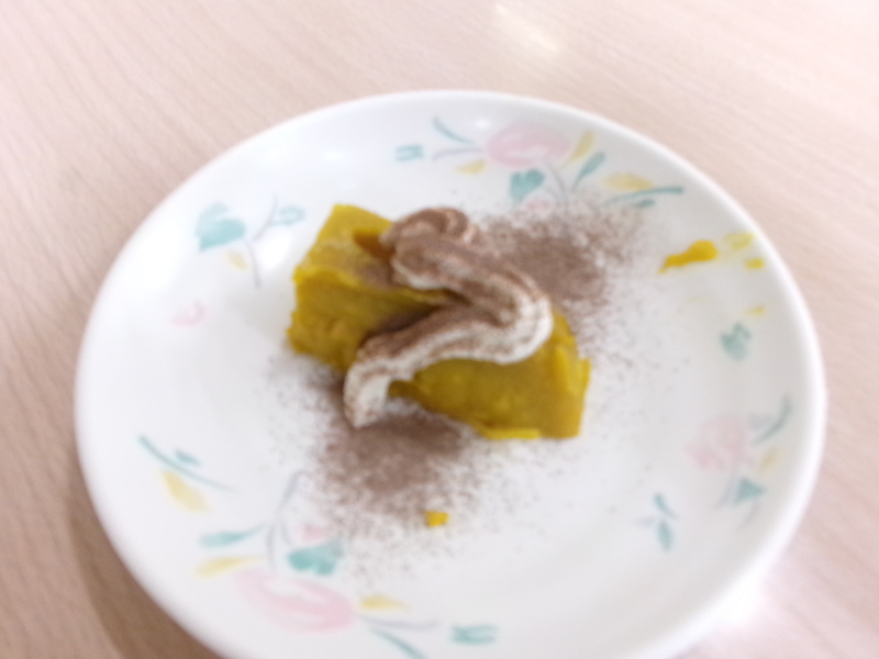 インフォメーション 白樺デイサービス 2025/10/18かぼちゃのケーキ作り🍰今日はカボチャのケーキ作りを行いました。口の中に入れると溶けるくらいトロトロの柔らかいケーキが出来ました。トッピングにホイップクリームとココアを振り甘すぎず皆さんとっても美味しいと大好評でした✨ ひとつ前に戻る