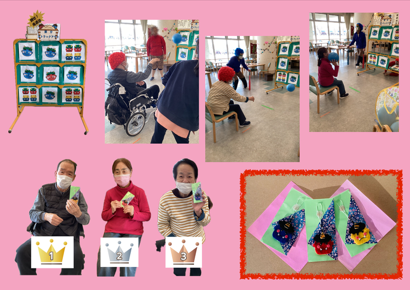 インフォメーション はるとりの里 2026/02/03⭐️節分ストラックアウト⭐️節分の豆まきに見立ててストラックアウトを行いました😄途中動く鬼が登場し邪魔をしましたが皆さん上手に的に当ててました😂上位3組には鬼のストラップを贈呈❣️ ひとつ前に戻る