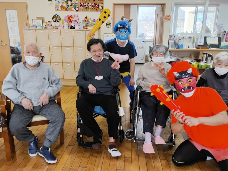インフォメーション さくらの里 2026/02/04節分① ~さくらの里デイサービス~2/3、4 の2日間に渡り、節分の豆まきとフエルトを使って恵方巻作りをしました👹✨職員が鬼に紛争し、みなさま容赦なく豆をまいてくださいました😊福がみなさまのもとに舞い込んできますように♬こちらは鬼との記念写真です。 ひとつ前に戻る