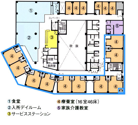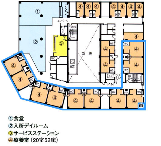 2階棟(4人部屋10室、2人部屋2室、1人部屋8室) 3階棟(4人部屋10室、1人部屋6室) ※短期入所分を含む |
